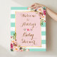 Baby Shower Sign Pink Floral Mint Green Stripes Poster.