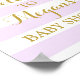 Welcome to the Baby Shower sign poster with custom name in light lavender purple and white stripes pattern with gold glitter effect confetti, please note gold is photographic effect only.