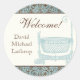 Baby Shower Stickers - Blue Brown Damask Cradle