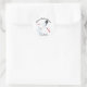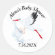 Cartoon stork flying with a baby in a blanket on a white background for a Baby Shower.