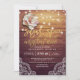 Faux Gold Foil Script Elegant Floral and String Lights with Lace Decorations on Rustic Wood Background.