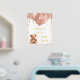 A welcome poster for an elegant and modern baby shower. A white background, a teddy bear holding rose gold coloured balloons. Personalise and add a name. Text: real gold foil.