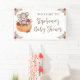 This baby shower welcome banner features a whimsical watercolor fall design with a cute teddy bear sitting on a pumpkin and burgundy flowers and foliage. Personalise it with your text. Other matching baby shower items are also available. Please view the collection page or visit our store to view the full range.