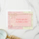 A thank you note that I created specifically to go with the matching invites. Pretty pinks and soft yellows and a cute bird.