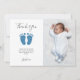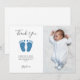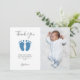 This Boy's Baby Shower Thank You Card is decorated with elegant script typography and cute blue glitter baby's feet.