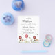 A white background. Decorated with painted wildflowers in muted, earth colours and butterflies. Personalise and add a name and party details.