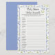 Create a fun and interactive moment with this editable baby shower word scramble card, beautifully designed with soft, rounded edges for an extra touch of charm. Featuring a gentle watercolor bluebird caring for her baby beside a blooming African lily, this nature-inspired design feels warm and inviting while adding a playful element to your celebration. Easily customize the words to match your theme, making it a delightful activity for guests to enjoy during baby showers and special gatherings.