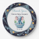 A decorative paper plate featuring a space-themed design, perfect for a baby shower thank you celebration.