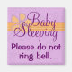 Just when you finally get your little one to sleep, somebody comes and rings the doorbell!...and wakes your baby up! This cute little magnetic sign will let visitors and delivery people know that there is a baby sleeping and it would be appreciated if they did not ring the bell. It is a magnet, not a permanent sign, so you can put it on the front door only when needed. This would be a unique baby shower gift!