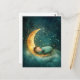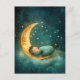 A digital beautiful illustration of a baby sleeping on a crescent moon.