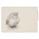 Digital watercolor painting of a tiny baby sparrow. This adorable little painting was created on the computer with the look of a watercolor painting by award winning artist Kathie Miller. Greeting card has the same image smaller and in the left bottom corner. Customise and add your own text