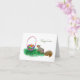 A little squirrel finds an basket full of coloured eggs on this sweet Easter card.