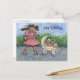 Word on note card note "Kitty Greetings" but can be changed to make your own custom greeting card message. Art features a little girl in pink pushing a baby stroller with 2 cats. Make your own custom cat lover gifts with personalised messages!