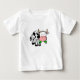 A nice grazing cartoon cow adorns this white baby T-shirt.