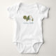 An adorable green baby turtle witha swirly shell and pink cheeks wears a pair of diapers with a blue diaper pin and yellow heart on it. Personalise this custom, new baby bodysuit and infant creeper to say whatever you want. This makes a cute and sweet baby shower gift for the new mum to be. Artwork © Chrissy H. Studios, LLC. All Rights Reserved.