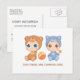 Baby Twins First Birthday Cat Bear Invitation Postcard
