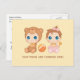 Baby Twins First Birthday Girl Bear Invitation 2 Postcard