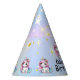 Baby Unicorn cardboard party hats are the perfect accessory to add magic and color to any children's celebration. Designed in a cone shape with a stars, and sparkly details that bring the fantasy of unicorns to life. Made from sturdy, cardboard, They're ideal for birthdays, themed parties, or fun photo shoots.