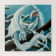 Cute baby white dragon sitting in an evergreen tree enjoying a winter day.