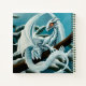 Cute baby white dragon sitting in an evergreen tree enjoying a winter day.