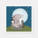 Adorable grey baby wolf cub, sitting on some rock howling at a bright blue full moon on a starry night.