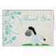 Send a thank you to your guests with this cute and trendy blue zebra folded thank you card. The design features a blue baby zebra with a blue floral pattern against a cream and pinkish textured background.