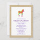 A baby shower (or other event such as a birthday) invitation with an illustration of a baby zebra. Bold colourful neon colours. The background is a kraft paper texture.