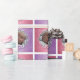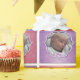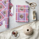 Baby's 1st Christmas Personalised Photo Wrapping Paper. This colourful and festive custom Holiday wrapping paper features tiled pink and purple squares, all personalised with the current year, and your baby girl's custom photo.