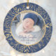 Babys 1st Christmas Photo Gold Foliage Navy Blue Ceramic Ornament