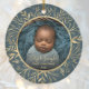 Babys 1st Christmas Photo Gold Foliage Teal Round Ceramic Ornament