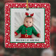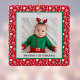 This charming design features a red and white peppermint and candy cane border, with a frame for your baby's or grandbaby's photo. Replace the placeholder photo with your own square photo, and update the text with your baby's name. It's easy to do! The photo is has a white border that's trimmed in a contrasting green for a festive look. What a great gift for grandma and grandpa, nona and pappa, mum-mum and pop-pop, and so on!