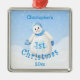 Cute little snowman wearing blue winter hat, scarf and mittens as delicate snowflakes fall through the winter sky is a delightful Christmas design for baby's first Christmas ornament. Personalise by replacing baby's name and year in template provided. We specialise in custom-made designs, contact us if you would like a unique 1st Christmas made-to-order layout using this snowman design.