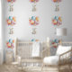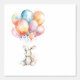 Sweet baby's bedroom wallpaper done in a white background, with beautiful artwork of a stuffed bunny rabbit floating on a bouquet of colourful balloons. Great for use as a border or full wall.
