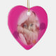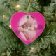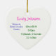 Baby's birth record Christmas ornament. pink flower heart shape frame.