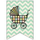 Take a stroll with this fun, stylised pram decorated with bright pink, orange, green, and blue stripes on the cover and a pattern reminiscent of wooden blocks on the body. The pastel mint and cream zigzags in the background accent the brightly coloured stroller. Customise the message on the banner with your soon-to-be little one's gender or a message of your choice to create a truly unique party decoration for your baby shower. This can easily be changed between "boy", "girl", and "baby", and if you're having twins or other multiples, just click the "Customise It" button for more options.