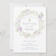 This adorable baby breath baptism invitation features a watercolor floral wreath of white baby breath and purple roses. Personalize with your information or click "Click to customize further" to edit font styles, size and colors.