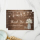 Baby's Breath Mason Jar String Lights Wedding Thank You Card.