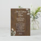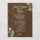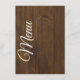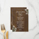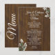 Rustic chic wedding table menu done in a dark stained wood look, with graphics of sprigs of baby's breath flowers in two corners. Lovely addition to your wedding reception tables.