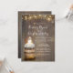 Floral rustic wood wedding invitation features wine barrel, baby's breath flowers, the string of lights and vintage lamp - lantern