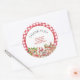 This charming round sticker is perfect for celebrating a baby's first birthday! Featuring a delightful cherry design on a classic red gingham pattern, it's the ideal way to add a touch of sweetness and festivity to party favors, gifts, or invitations. The timeless design and vibrant colors make it a memorable keepsake for this special milestone.
