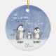 Celebrate your baby's first Christmas in a truly special way with our Custom Baby's Cute First Christmas Ornament. This adorable ornament is personalised with monogram names, creating a unique memento that will be cherished for years to come. Featuring an adorable penguin family nestled in a winter snow scene, it is the perfect addition to your holiday decor. Whether you're a mummy, daddy, or a family of three, this ornament captures the joy and love of your first Christmas together. Start a new tradition and create lasting memories with our custom ornament..