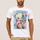 A baby first birthday is a very special moment and you want to celebrate. This is a gorgeous design of a cute teddy bear holding a small ballon with the number one printed on it. Above is written baby first birthday. This baby first birthday design looks great on this mens t-shirt. Perfect for yourself or as a gift