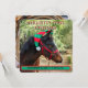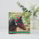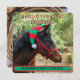 Horse colt wearing a red and green elf hat adorns this Baby's First Christmas announcement with birthdate and stats. This double sided card has space for a photo of your new baby cowgirl or cowboy, surrounded by a lariat. Be sure to customise text with your little one's information.