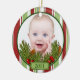 The text and photo on this Baby's First Christmas ornament are easy to customise. The festive red and green candy stripes, pine boughs and holly berries makes this a pretty and traditional Baby's First Christmas (1st Xmas) ornament. Make sure to check out the back as well, as there you can customise it with your baby's name! To change the text and photo use the personalise options. For more extensive changes to the ornament, including changing the font, font size, font colour, text placement, picture size and/or picture placement, use the customise it option.