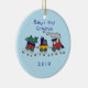 Adorable ornaments for baby's first Christmas that feature a colourful choo-choo train bringing Christmas presents. Customise the Christmas year in your own font and colour.