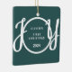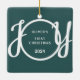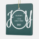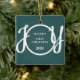 This keepsake Baby's First Christmas Ornament is decorated with the word JOY in stylish script typography on a green background.