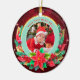 Celebrate a milestone with this stunning personalized photo Christmas ornament! Featuring a gorgeous teal background with sparkling gold accents and a festive wreath of poinsettias, holly, and candy canes, this ceramic ornament is the perfect way to display a treasured photo of your baby in their Santa outfit. Personalize it with the year ("20xx") to commemorate your little one's very First Christmas. A beautiful keepsake for new parents or a thoughtful gift for grandparents.