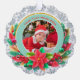 Celebrate a milestone with this stunning personalized photo Christmas ornament! Featuring a gorgeous teal background with sparkling gold accents and a festive wreath of poinsettias, holly, and candy canes, this ceramic ornament is the perfect way to display a treasured photo of your baby in their Santa outfit. Personalize it with the year ("20xx") to commemorate your little one's very First Christmas. A beautiful keepsake for new parents or a thoughtful gift for grandparents.