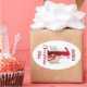 1st Christmas Oval Stickers for a baby girl or baby boy with a cute winter bunny and big red number one. Easily personalise the text. - Kate Eden Art