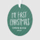 Celebrate and commemorate baby's first Christmas with this sweet and simple photo ornament. Featuring "my first Christmas" in playful type on a festive green striped background, this cute baby ornament also has room for custom text for the name and year and also a photo on the reverse side. This first Christmas ornament makes a great gift for new parents or can be bought for your own family!